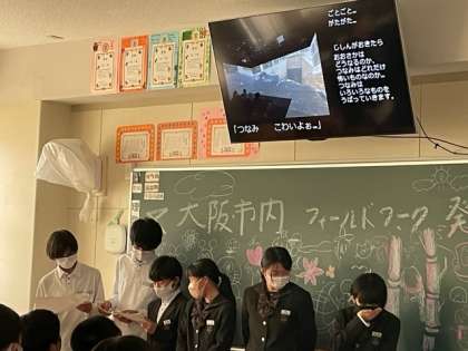 今日は、大阪市内フィールドワークのプレゼンテーション学級発表会でした。