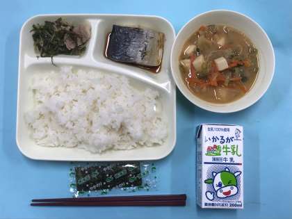 さごしの醤油だれかけ、みそ汁、水菜の煮びたしと焼きのりでした。