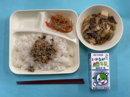 今日は、ご飯(ツナっ葉炒め)と牛乳。