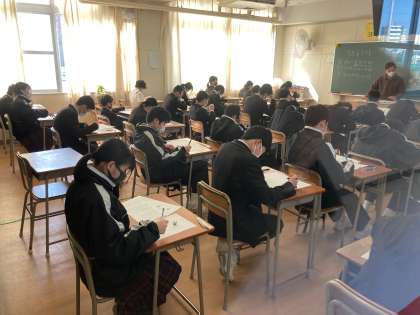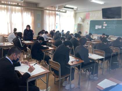 学年末テストが始まりましたが、生徒本人はもとより、同居家族の方にも同様に医療機関等に相談すべき症状が見られる場合(見られた場合)も、お子様の登校を控えさせてください。学校へご連絡をお願いします。