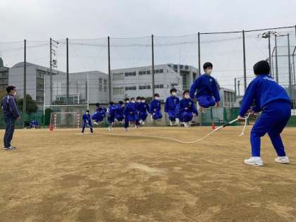 まだ、肌寒い季節が続いていますが、今日の午後、1年生が大縄大会を行な