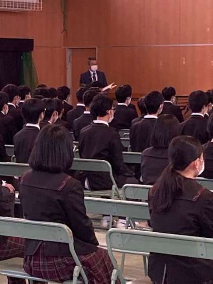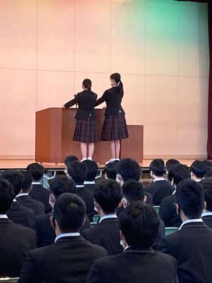 校長先生、教頭先生にも来ていただき、生徒会役員も皆さんも参加してくれました。