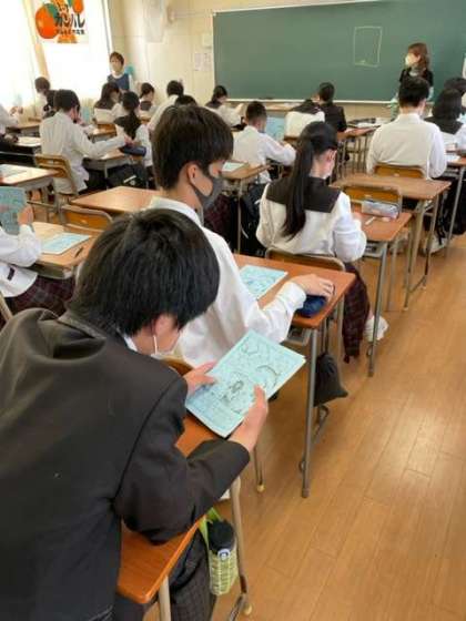 今日は、しおりを製本し読み合わせを行いました。