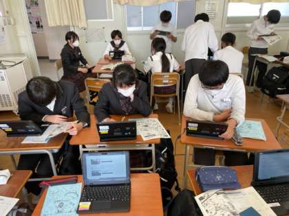 今日の5、6限目は中間テストのテスト計画、修学旅行の倉敷美観地区での班行動の計画、体育大会の出場種目の決定をしました。