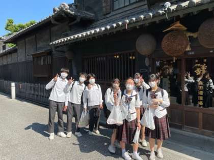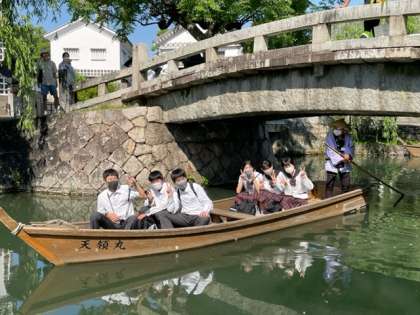 班に分かれて美観地区を散策しています。