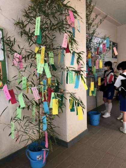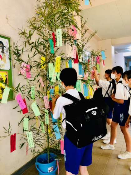 生徒達は、皆さん願いを込めて短冊を書きました。皆さんの素敵な願いが叶いますように!心がキラキラ美しいなぁと感じたことは、先生方の幸せを願って書いてくれている短冊が沢山ありました。思いやり溢れる生徒がいる事が大変嬉しい今日この頃です。