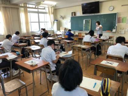 1時間目は、国語です。口語動詞活用表、口語形容詞活用表、口語形容動詞活用表、口語助動詞活用表をみながら、学習しています。