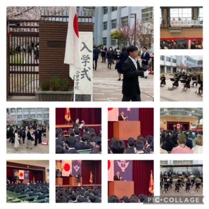 桜も天気もちょうどいい感じで、第77回入学式が本日行われました。