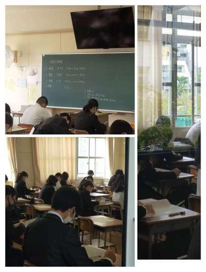 本校においても、3年生が国語、数学、英語の問題に真剣に取り組んでいます。