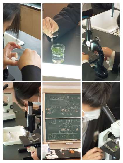 理科室をのぞくと2年生が 顕微鏡を使って 玉ねぎや葉っぱの細胞を観察していました。