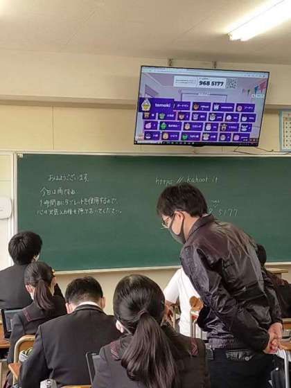 本日、3年生国語科において研究授業がありました。単元の中にハンドサインが出てくることから、端末を使いゲーム形式で、日本、アメリカのハンドサインについて学習しました。アメリカのハンドサインの意味は、日本のそれと異なっているので、選択するのが難しかったですが、トップだった人は15問中14問の正解でした。