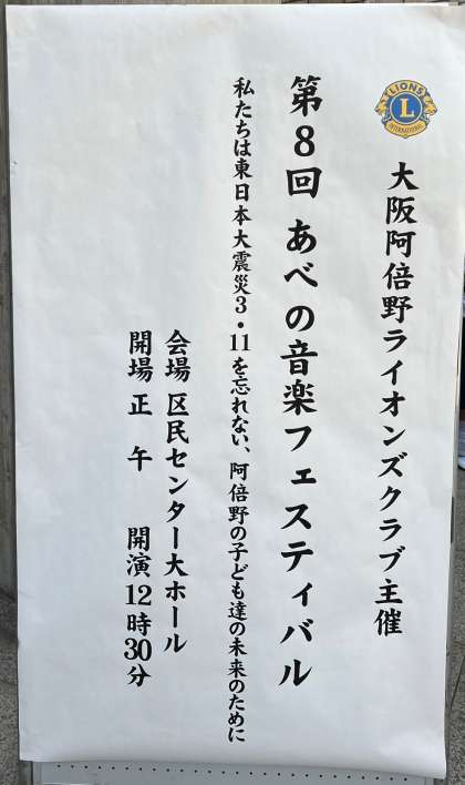 4月23日(日)、阿倍野区民センター大ホールにて、大阪阿倍野ライオンズクラブ主催による第8回あべの音楽フェスティバルが行われ、文の里中学コーラス部も参加しました。