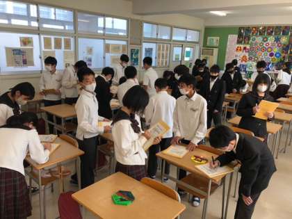 昨年の作品に、今年度透明ニスを塗装しました。今日鑑賞会を行いました。