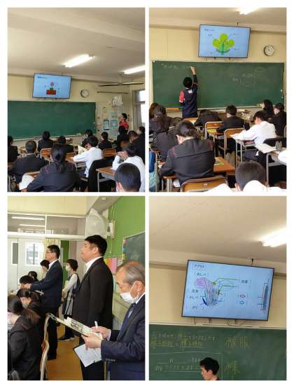 午前中、1年生の理科の研究授業を行いました。単元は「植物の分類」で、花のつくりと変化について学習しました。