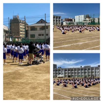 好天のもと、5、6時間目を使って体育大会の練習を2年生が行いました。