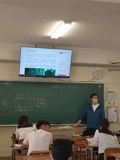 ○原子の質量と 陽子、電子、中性子、原子核についての授業でした。