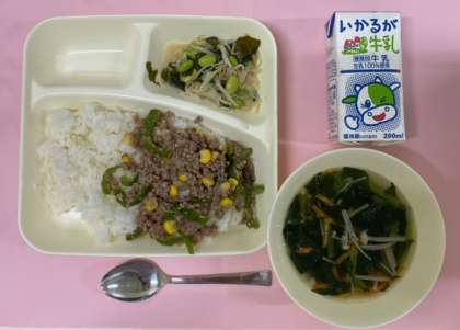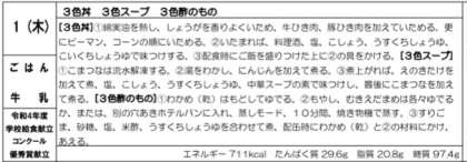 今日の給食は学校給食献立コンクール優秀賞作品です。丸山小学校の昨年度6年1組の児童が考えました。