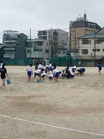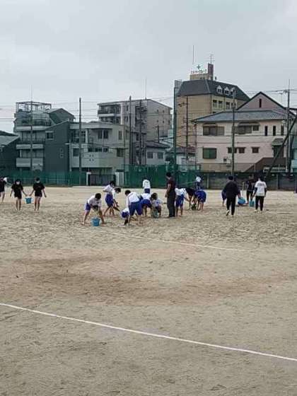 ○朝早くから体育委員や部活の有志がグランド整備をしています。
