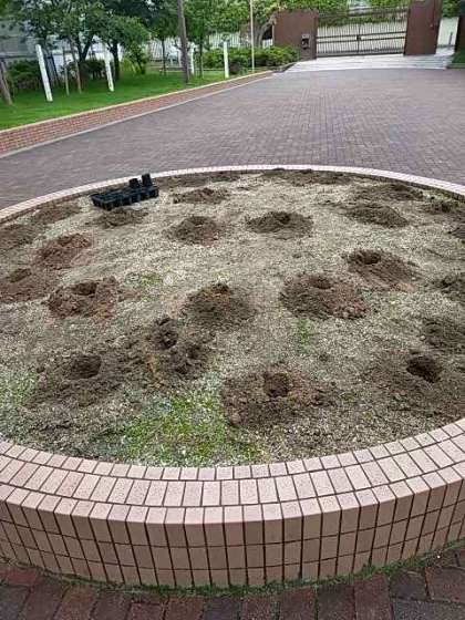 ○校庭の花壇に不思議な穴が???