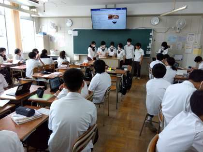 2年家庭:献立をグループごとに発表しました。
