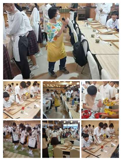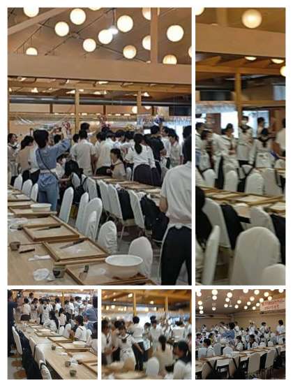 ○うどん踏み体験 軽快な音楽とともにダンスうどん踏みに盛りあがりました