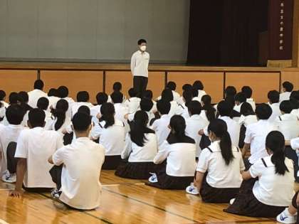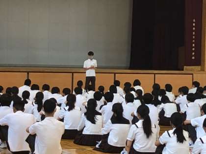 今日は山村先生からのお話しでした。部活に関する事で、先生のバレー人生体験から学んだ貴重なお話しでした。