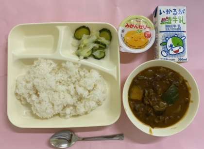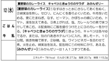 夏野菜のカレーライスは、夏野菜のかぼちゃ、なす、ピーマンなどを使用した夏を感じることが出来る献立です。