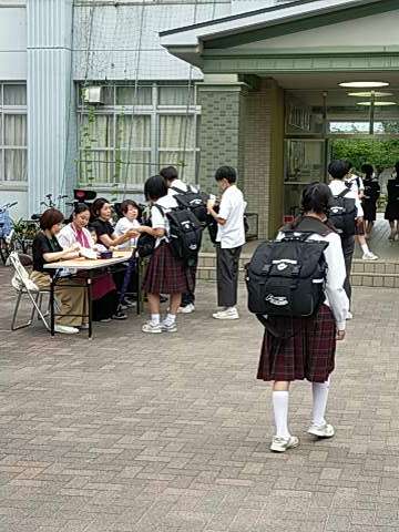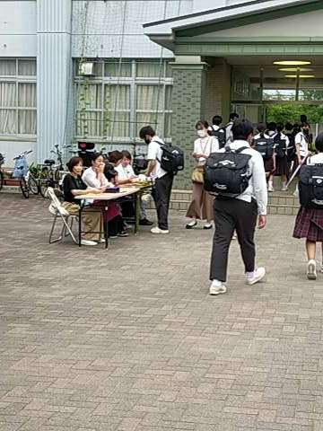 ○登校時に、1、2年生に対して英検の受付をPTAの方々にお手伝いいただきました。