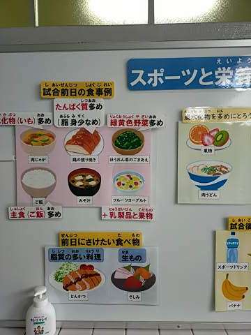 ○試合前に摂りたい栄養、試合当日に摂りたい栄養などを示しています。