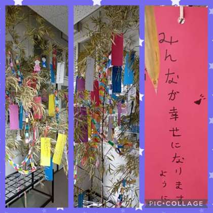 ○一週間ほど経ちましたが、夜間学級の保健室前には、七夕飾りが設置されています。