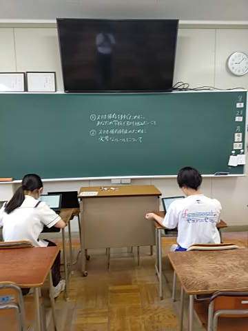 ○生徒会では、8月末にある中学生スマホサミットに備えて、スマホ利用に関するプレゼンを作成しています。