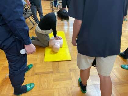 消防署の方に来ていただき教職員対象の救急救命講習を受講しました。