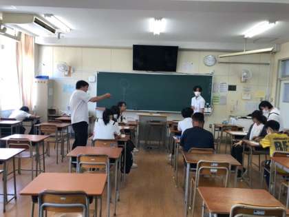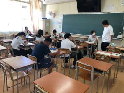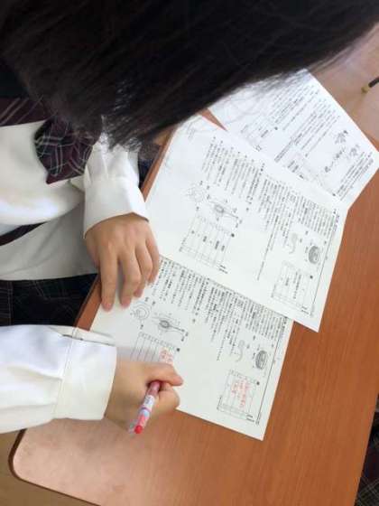 2限は理科を学習しています。実力テストの過去問プリントに取り組んでいます。頑張っています!