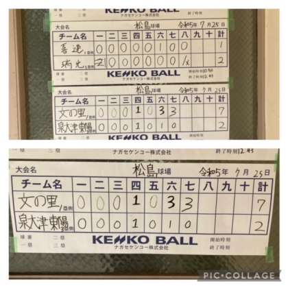 ? 本日西区の松島公園グランドで上記大会のが行われ、文の里中野球部が見事7-2で泉大津市立東陽中学校に勝利し大阪府ベスト16です。次の対戦はベスト8を賭け松原7中と小津・富秋の勝者と明後日、本日と同じ松島公園グランドで行われます。