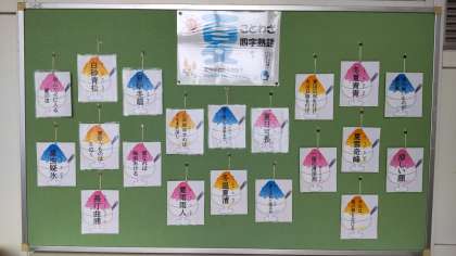 8月の掲示は「夏のことわざ・四字熟語」です。調べていると、知らないことばがたくさんあって驚きました。