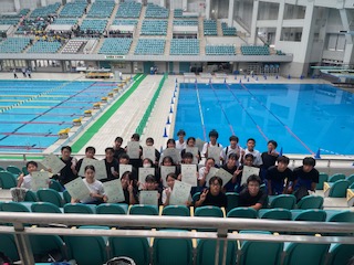 本大会は水泳部全体で出場する今年度初めての大会です。全員がチームのために頑張って泳いでくれました!