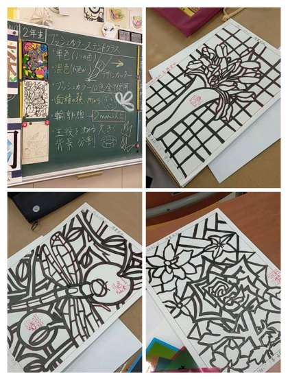 ○プッシュカラーステンドグラスに取り組んでいます。進捗が速い人は、色をはめ込んでいました。