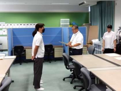 本日は1時間目が始業式でした。始業式の前に部活動の表彰を行いました。