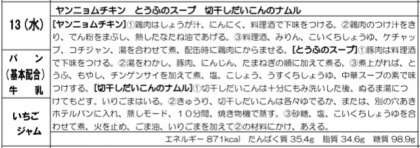 今日の給食は、油で揚げた鶏肉に、料理酒、みりん、こいくちしょうゆ、ケチャップ、コチジャンで作ったタレをからめています。