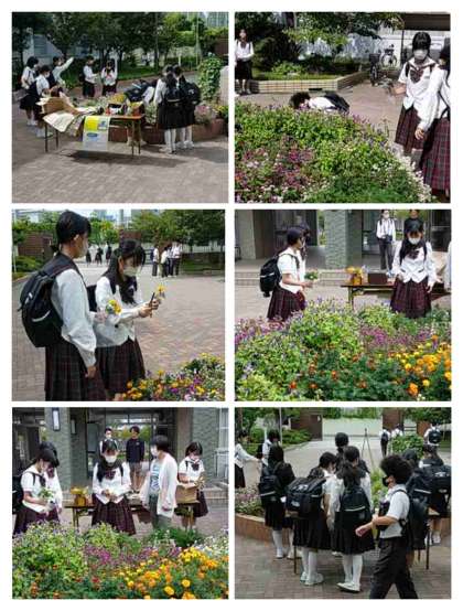 ○たくさんの生徒が花を摘んでくれました。どこに飾るのかな?