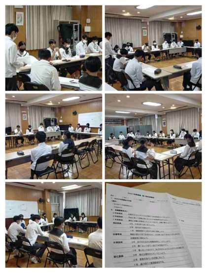 ○各種委員からの目標発表のあと、校則について話し合いました。