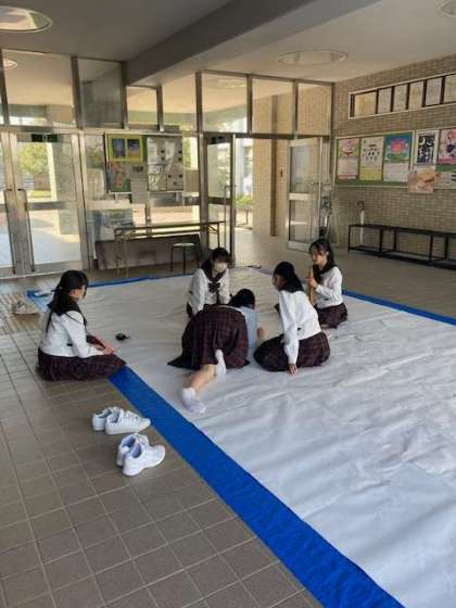 3年生は劇のセリフの練習と劇で使う背景を頑張っていました。