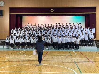 2年生は二時間余りのあいた、入場の方法や並び方の練習をして、合唱の練習もしました。沢村先生の指導もあり、時間が経つにつれ段々と声も出て、上手になっていきました。沢村先生ありがとうございます。