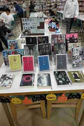 ○ハロウィンが近いので、図書室に「ミステリー、ホラー」コーナーが特設されています。