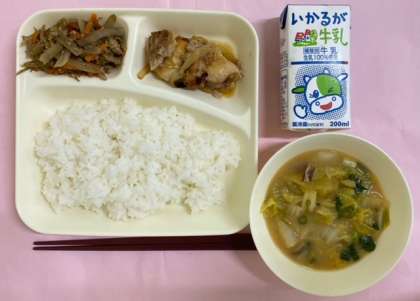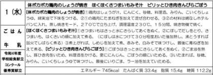 この献立は学校給食献立コンクール優秀賞作品です。田川小学校の昨年度5年生の児童が少し寒くなる時期に、風邪をひかず、体を温め、元気に過ごせる献立を考えました。