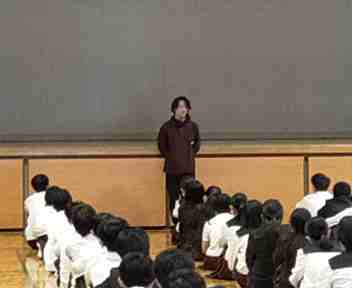 ○浜田先生から職場体験に行く前の心構えについてお話がありました。