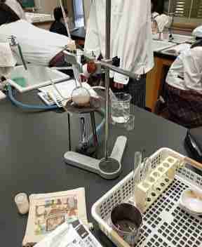 ○赤ワインを煮沸させて、気化した気体を液体にして収集しています。