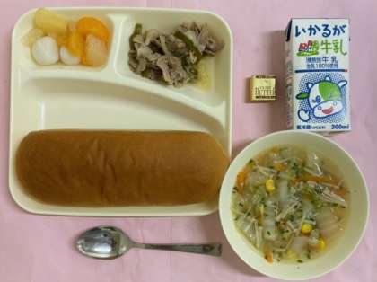 今日の給食に出てくるフルーツ白玉は生徒に人気のメニューです。白玉だんごに砂糖、湯で作ったみつをかけ、ミックスフルーツとあわせています。