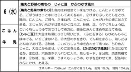 じゃこ豆はゆでたちりめんじゃこと、でんぷんをまぶして菜種油であげた大豆に、甘辛い調味液をからませます。かみごたえのある、児童生徒に好評な献立です。