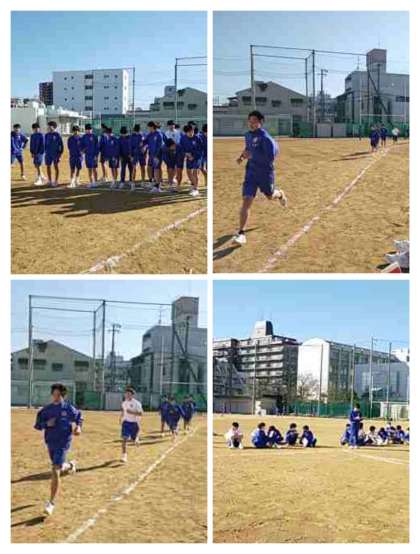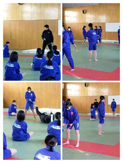 ○女子は格技室で柔道、男子は持久走に取り組んでいます。